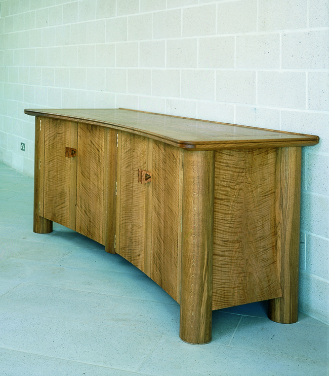 This curved, double-fronted sideboard was designed and made for a circular library designed by Sir Denys Lasdun.