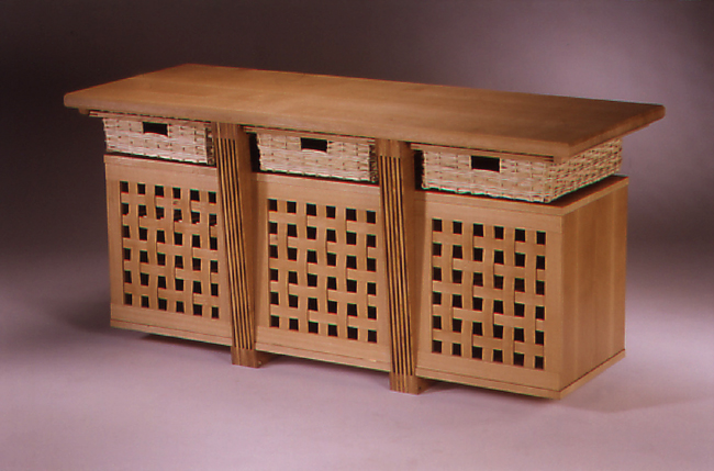 With willow basket drawers and woven oak slat door-fronts, this is a textured, light and attractive storage unit.