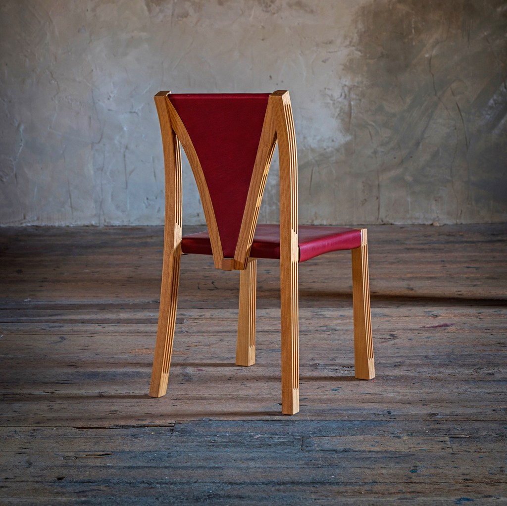 Lattice Chair Ash, Tuscan red veg-tanned leather