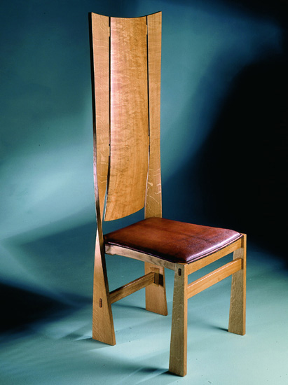 Highback Twist Chair, Brown Oak, steam-bent and oiled, hand-stitched Russia leather seat