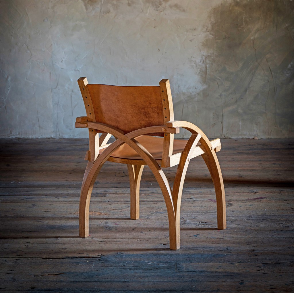 Highback Twist Carver, Brown Oak, steam-bent and oiled, hand-stitched Russia leather seat