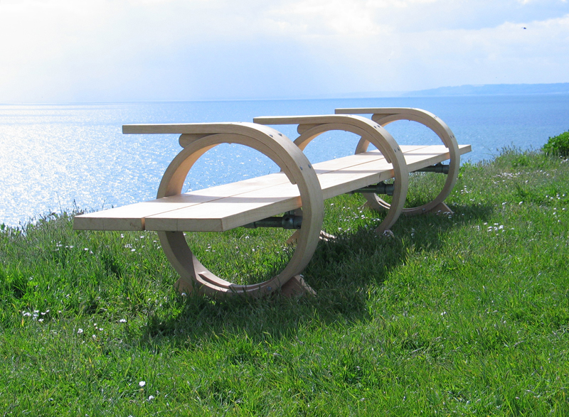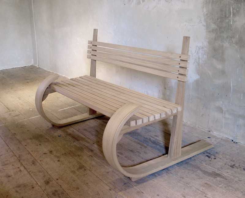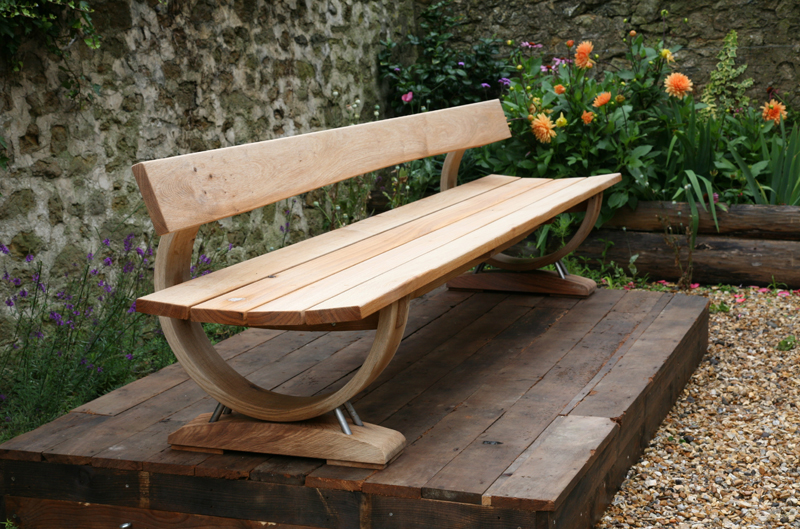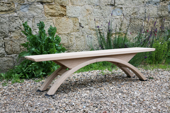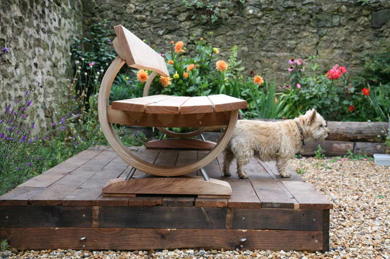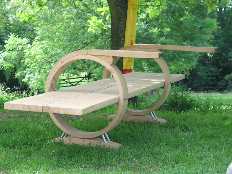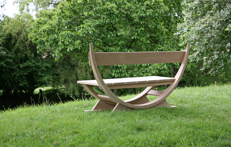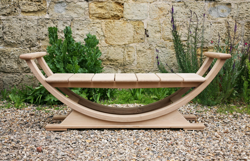 Petter Southall’s outdoor furniture includes curves and circles made in steam bent solid hardwoods, immaculately crafted and designed with comfort and longevity in mind. Most of the designs below can be made to order. We have two benches in stock and available to buy now.